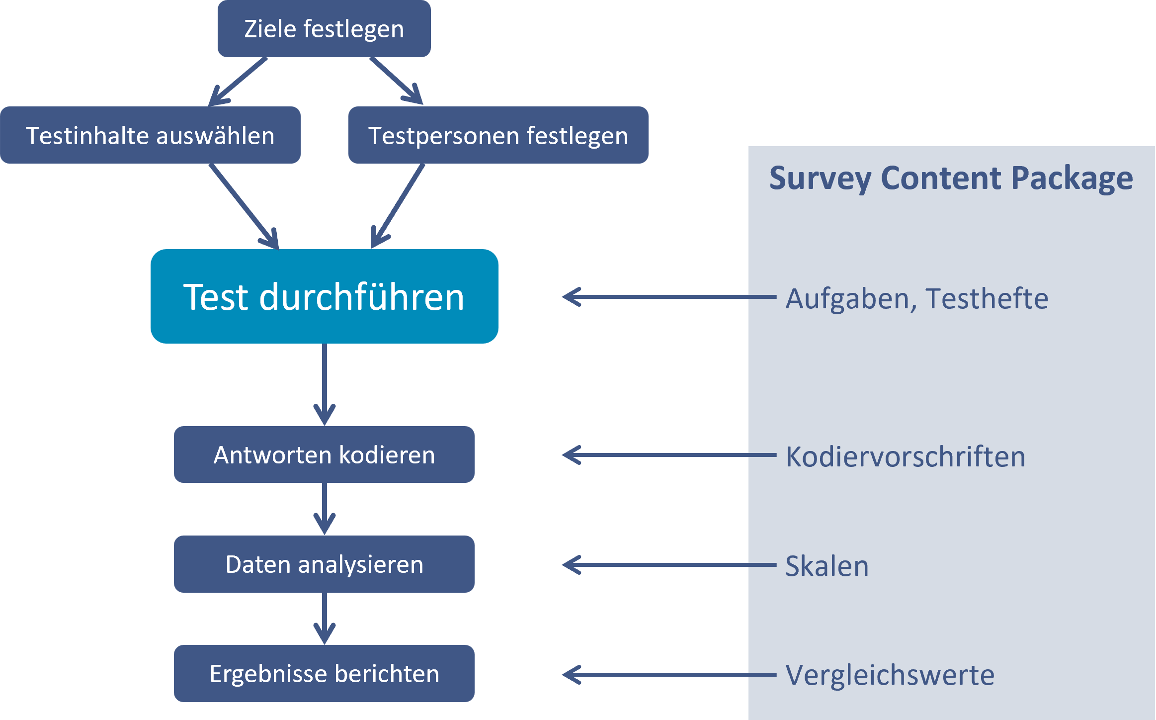 Rechts in der Darstellung ist mit “Survey Content Package” der Testcontent für den Test dargestellt: