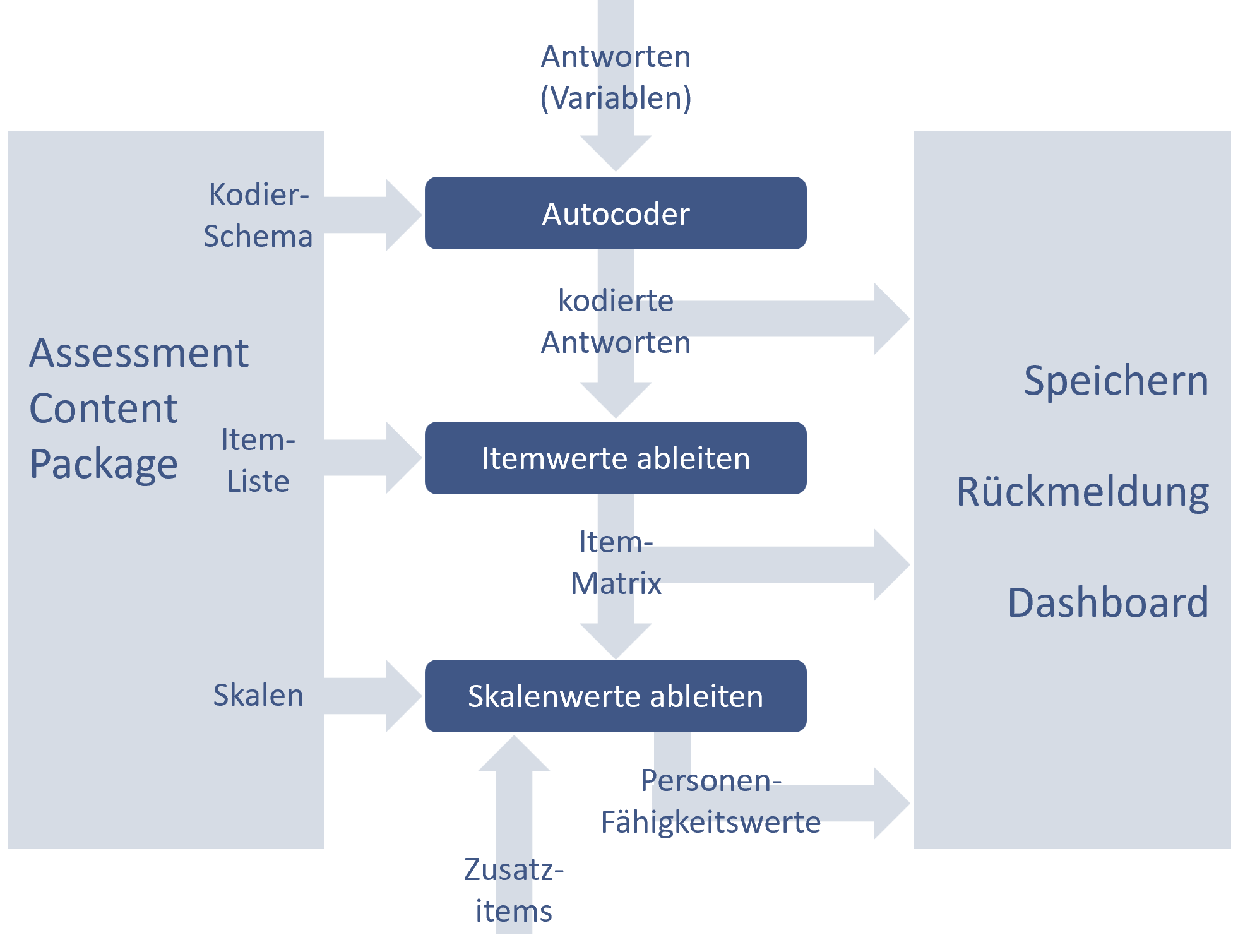 Damit ist man in der Lage, für die Testperson Fähigkeitswerte zu berichten. Es gibt dabei kein “Soll”, d. h. der Service kennt die Person nicht und kann nicht überprüfen, für welche Skalen der Request Werte liefern müsste. Es werden nur Skalenwerte geliefert, zu denen Antworten bzw. Zusatzitems gefunden wurden.