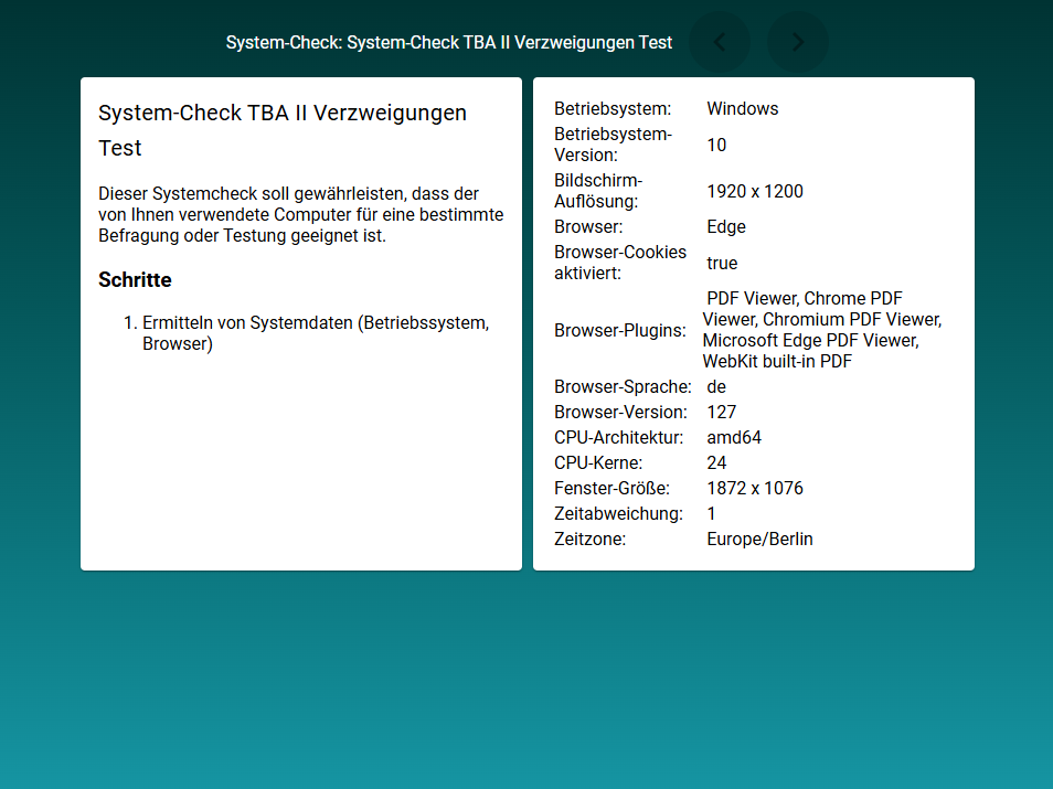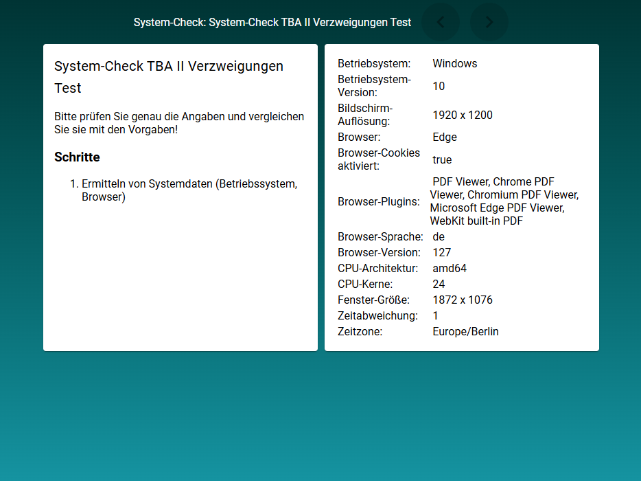 Im einfachsten Fall liefert ein System-Check nur wichtige Eckdaten, wie bspw. Browserversion und Betriebssystem. Diese können manchmal schon ausreichen, um eine Bewertung im Vorhinein zuzulassen.