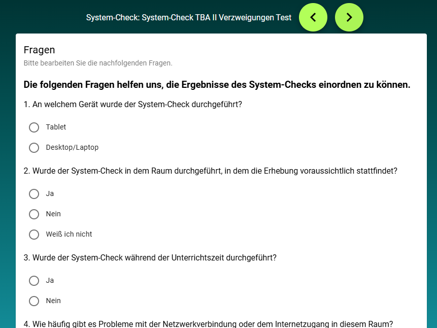 3. Wurde der System-Check während der Unterrichtszeit durchgeführt? | Nein |