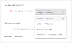 Die Größe der Antwortfelder kann unter „Antwortfeldgröße“ bearbeitet werden. Unter „Einzeilig“ können Sie die Länge des Antwortfeldes abhängig von der erwarteten Wortanzahl bestimmen.