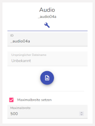 Neben der Anpassung der ID (hier: „audio_1“) können Sie mit einem Klick auf den blauen Knopf die Audiodatei ändern. Es öffnet sich ein Fenster, in dem Sie die gewünschte Datei auswählen und mit „Öffnen“ ins IQB-Studio laden können.