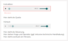 Der bei der Aufgabenerstellung automatisch generierte Text „Drücke zuerst auf das Dreieck, dann startet das Audio.“ kann nachträglich in den Texteigenschaften angepasst werden.