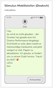 Der Assistent „Stimulus: Lesestimulus – Mobiltelefon“ hilft Ihnen beim Erstellen von Lesestimuli in Form von Textnachrichten auf einem Mobiltelefon.