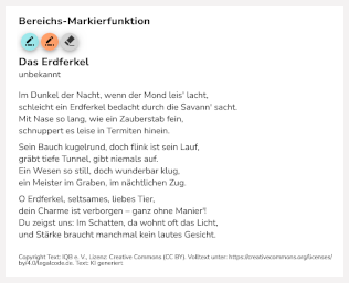 Der Assistent „Stimulus: Lesestimulus – Text“ hilft Ihnen beim Erstellen von Aufgabentexten. Diese können hier formatiert werden.