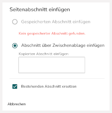 Wenn ein Abschnitt in eine andere Aufgabe in den gleichen oder auch in einen anderen Arbeitsbereich eingefügt wird, passiert dies über die Zwischenablage. Dafür klicken Sie in den leeren Rahmen und fügen über Strg+V oder Rechtsklick + Einfügen den kopierten Abschnitt ein.