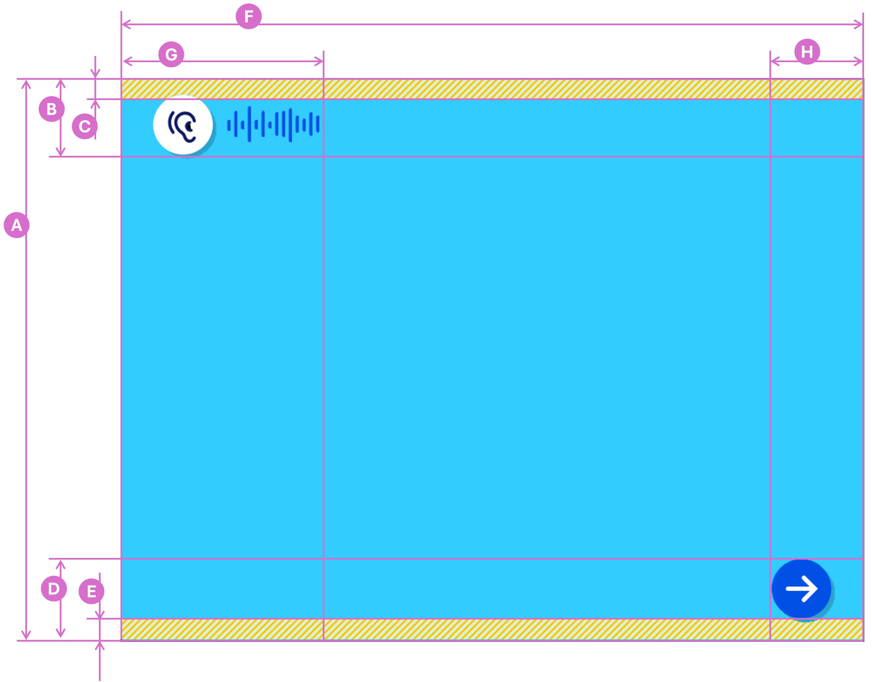 Die verfügbare Höhe ermittelt sich über A * wenn Audio minus B * wenn Weiter-Button minus D